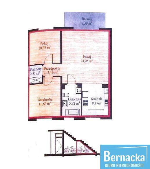 - przynależny ogródek o powierzchni 64 mkw, komórka lokatorska znajdująca się na zewnątrz pod schodami oraz miejsce postojowe pod budynkiem,