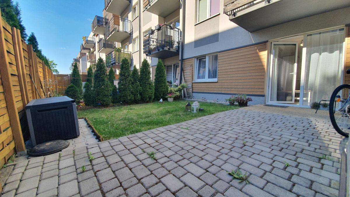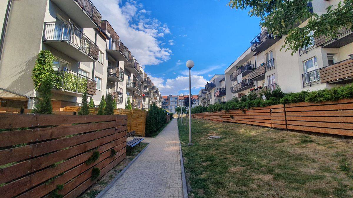 Mieszkanie zlokalizowane na kameralnym,nowoczesnym osiedlu `Mała Toskania` w budynku z 2015r.Kompleksowo zaprojektowane osiedle zapewnia bezpieczeństwo (osiedle zamknięte), dużą liczbę miejsc parkingowych, tereny zielone, plac zabaw dla dzieci a gustowne wykończenia nadają walorów estetycznych. Dużym ułatwieniem jest znajdująca się w budynku rowerownia, oraz bramka wejściowa na prywatny ogródek.