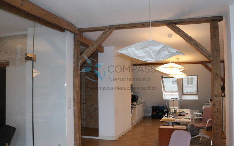 Jasne i przestronne mieszkanie z bardzo dużym potencjałem,z widocznymi oryginalnymi belkami drewnianymi,wysokimi sufitami , przeszkleniami, dużą łazienką,korytarzem,kuchnią z możliwością zmiany na 3-y lub 4-ry pokoje.
