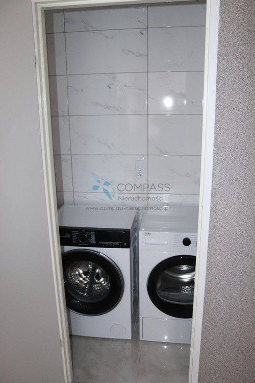 W budynku dostępna nowa pralnia z pralką i suszarką bębnową.