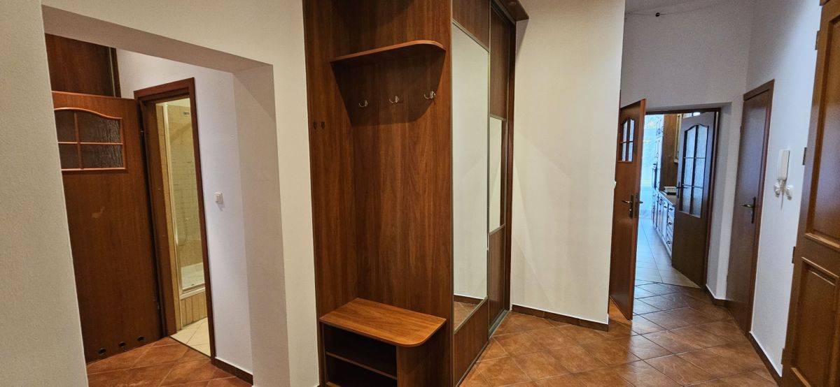 Duży przedpokój z niezależnym wejściem do dwóch pokoi, kuchni, WC, łazienki oraz dwóch praktycznych schowków. W przedpokoju znajduje się pojemna szafa typu garderoba, zapewniająca mnóstwo miejsca do przechowywania.