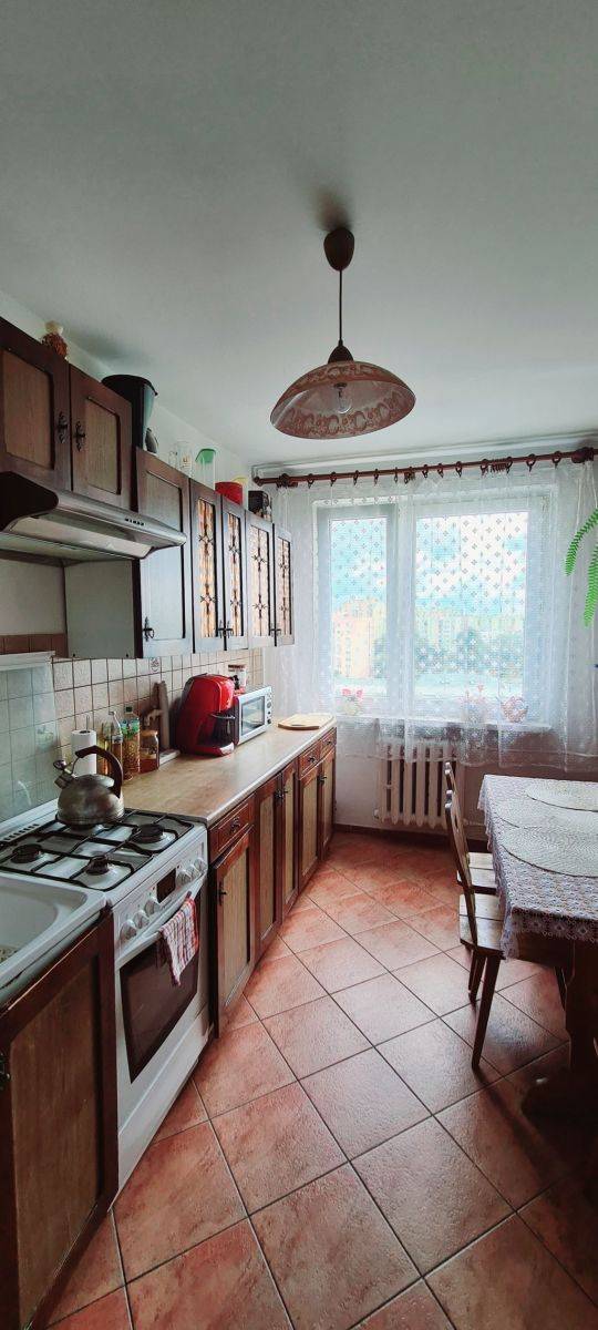 Mieszkanie jest w dobrym stanie technicznym: na podłogach znajduje się estetyczna mozaika parkietowa, ściany pokryte gładzią gipsową, a okna plastikowe. W kuchni zastosowano tapetę i drewniane meble, które można odświeżyć według własnego gustu. W łazience i wc kafle.