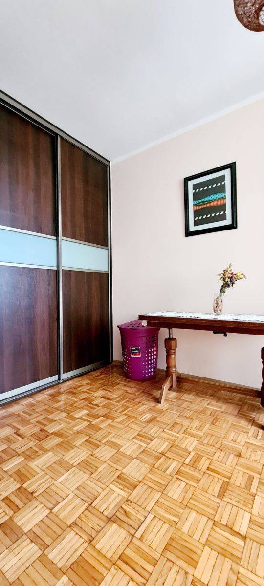 - Pokój o powierzchni 10,45 m², wyposażony w dużą, głęboką (60 cm) szafę wnękową, idealny na pokój dziecięcy lub gabinet.
