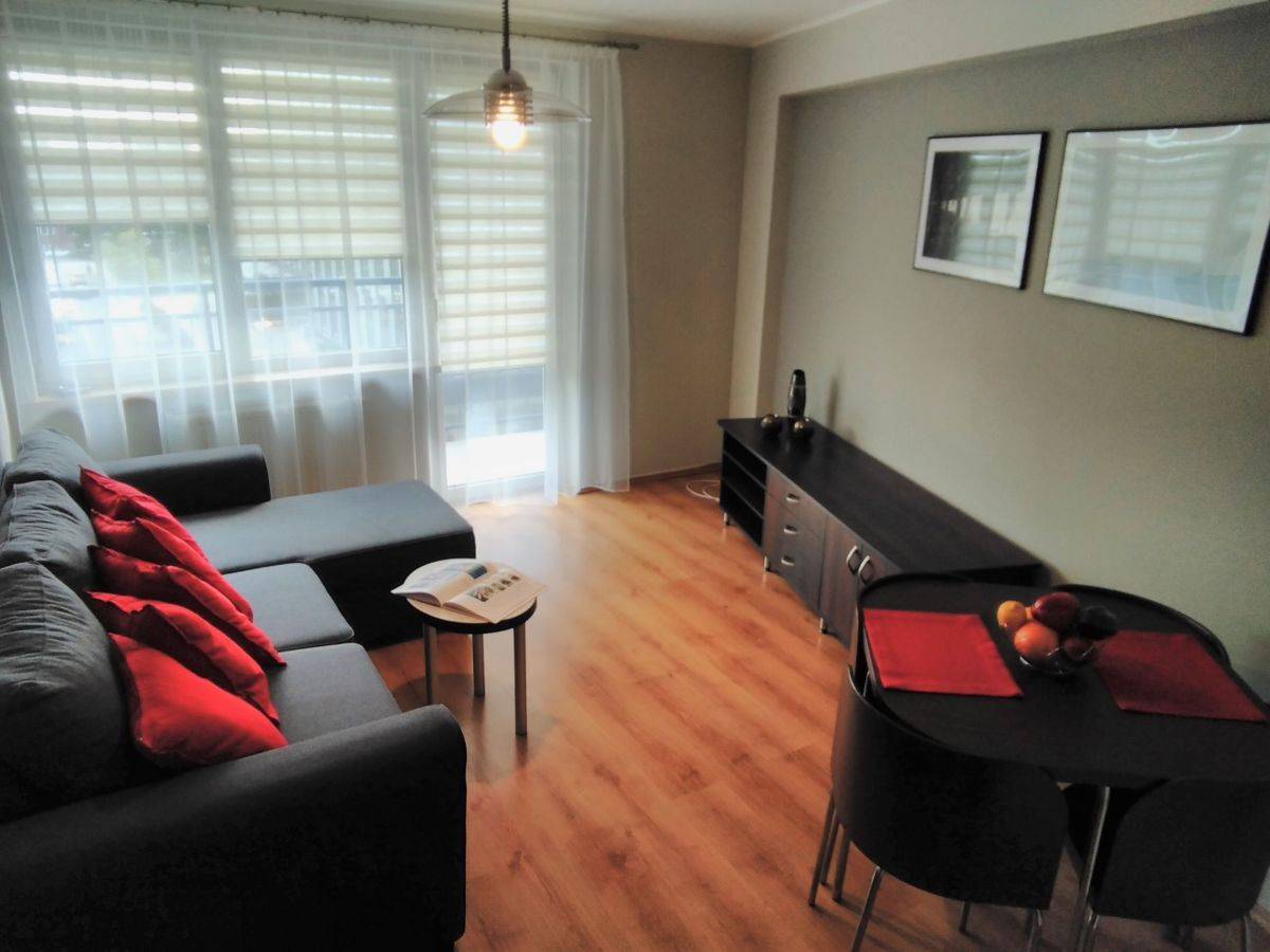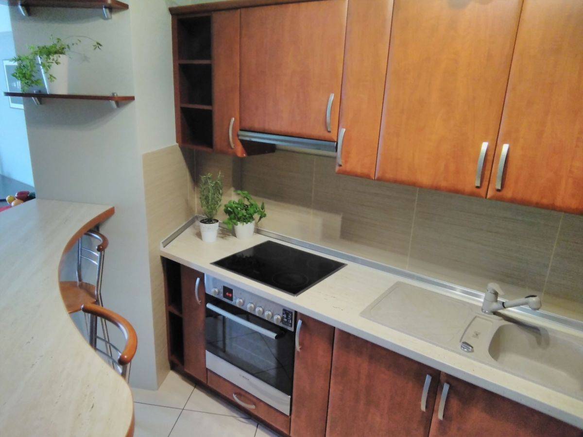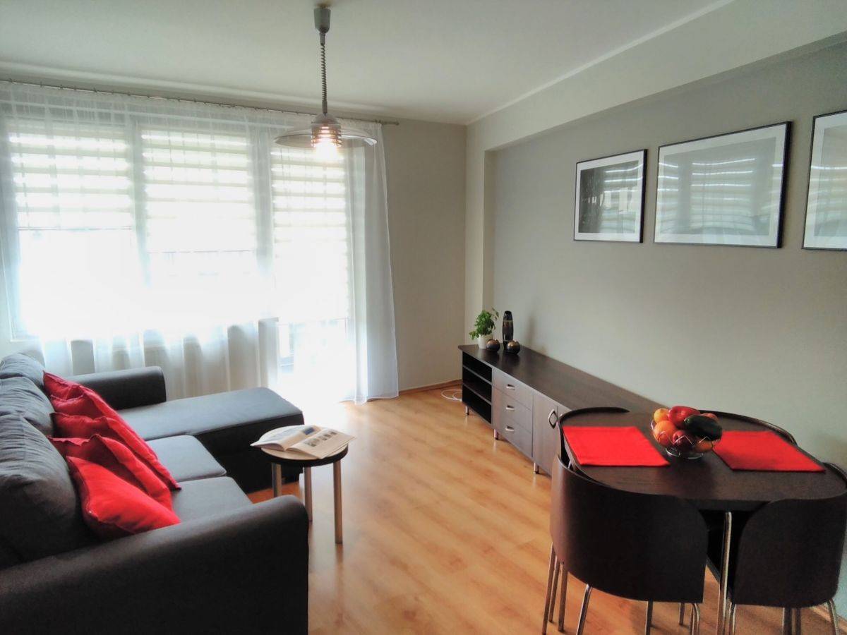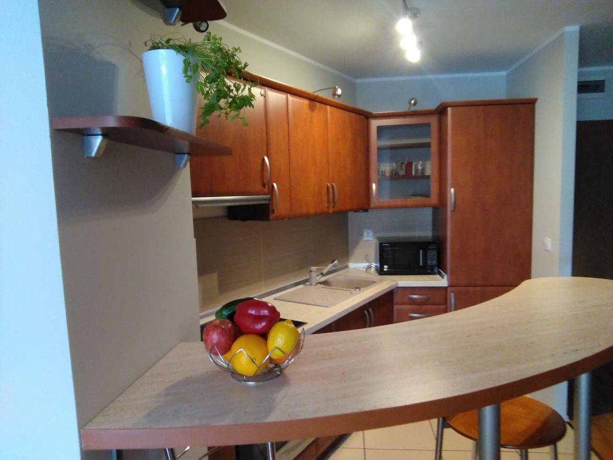 Mieszkanie w pełni umeblowane i wyposażone. W pokoju dziennym narożnik z funkcją spania, w przedpokoju duże szafy. Kuchnia umeblowana i wyposażona: kuchennka, piekarnik, lodówka, mikrofalówka,ekspres do kawy. Łazienka z prysznicem, pralka.
