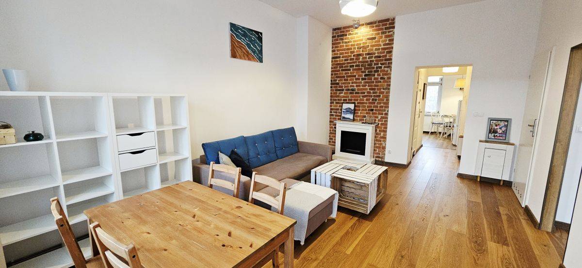 Ogrzewanie gazowe, podłogi drewniane, mieszkanie wykończone w zachowaniem stylu kamienic, wysokie pomieszczenia, ściana w pokoju dzienny z oryginalnej cegły.