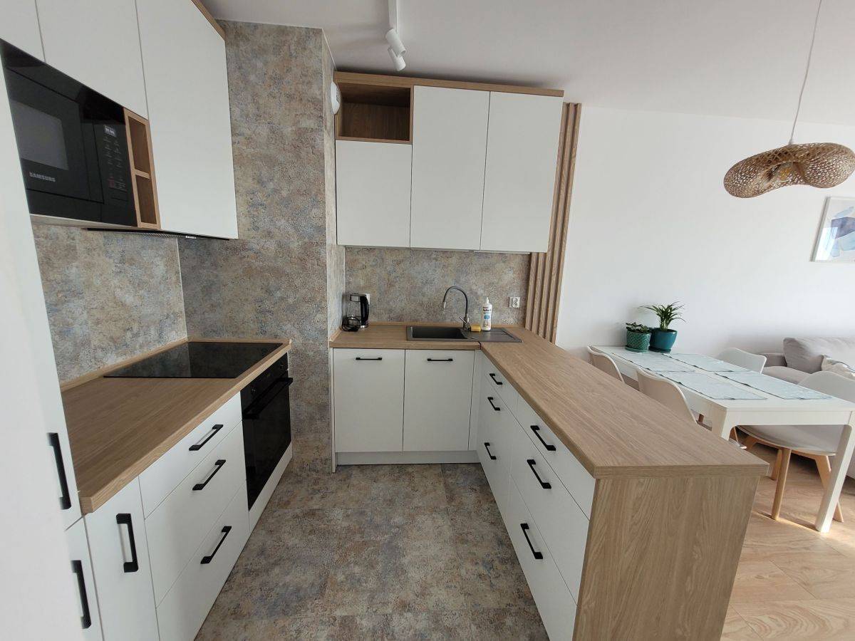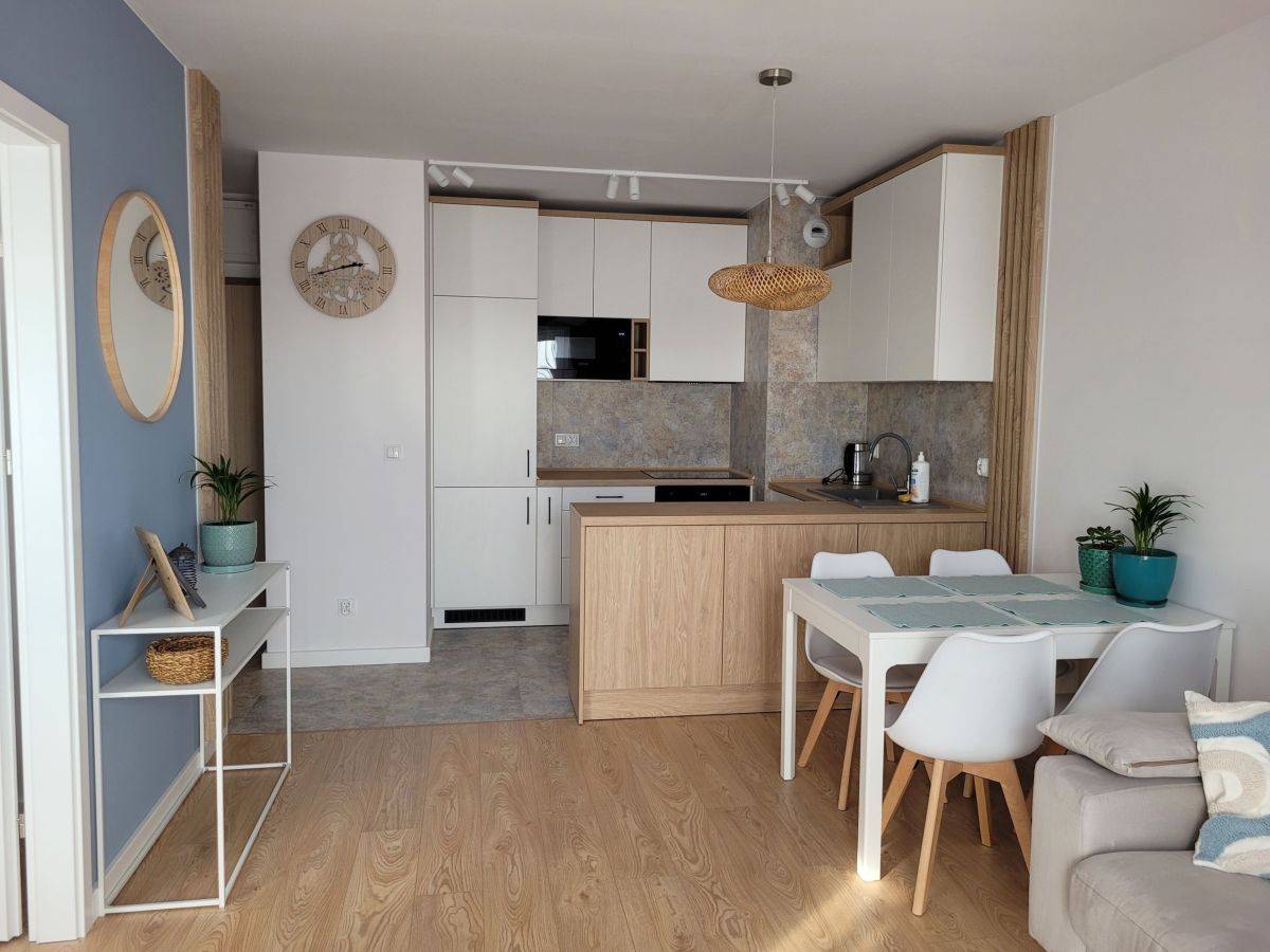 To mieszkanie zostało zaprojektowane z myślą o wygodzie i funkcjonalności. Jasne, naturalne pastelowe kolory wnętrz tworzą przytulną atmosferę, a staranne wykończenie wysokiej klasy materiałami zapewnia trwałość i estetykę na lata. Mieszkanie jest w pełni umeblowane i wyposażone, gotowe do wprowadzenia się.