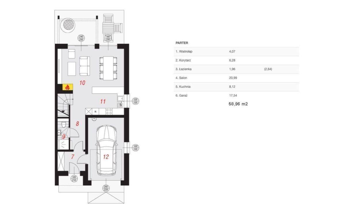 - garaż 17,54 m²
