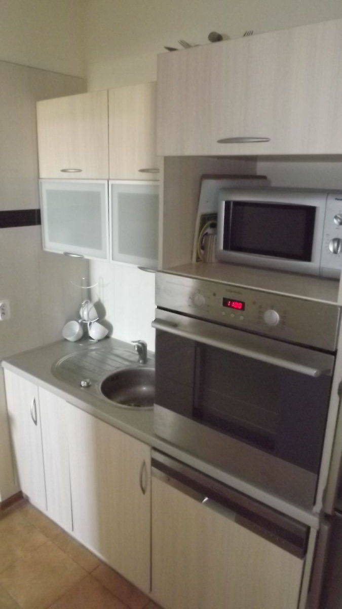 Kuchnia w formie aneksu, składającego się z dwóch części jednej z płytą elektryczną i blatem do pracy, drugiej z częścią techniczną: zmywarką, zlewozmywakiem, piekarnikiem, mikrofalówką, chłodziarko- zamrażarka.