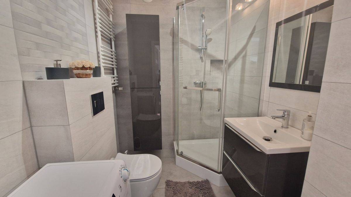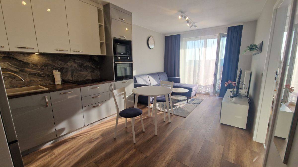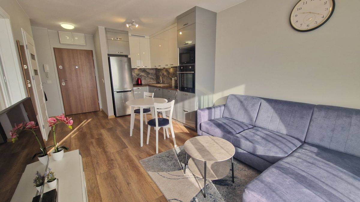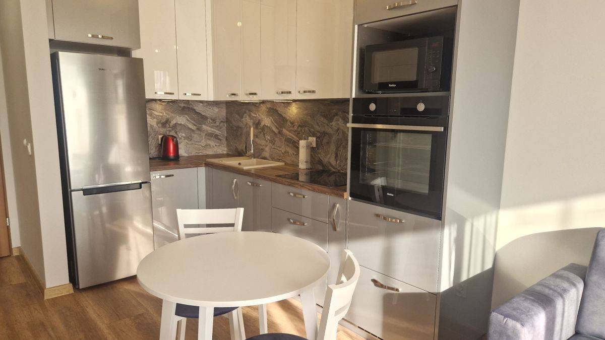 - przestronny salon z aneksem kuchennym wyposażonym w meble w zabudowie i wszystkie niezbędne sprzęty (min. zmywarka, lodówka, płyta indukcyjna, piekarnik)