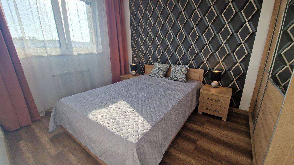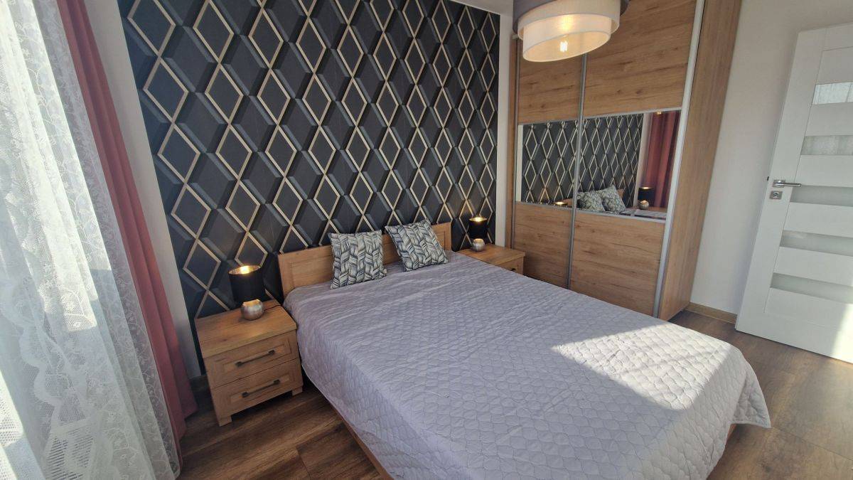 - sypialnia z dużym łóżkiem i pojemną szafą