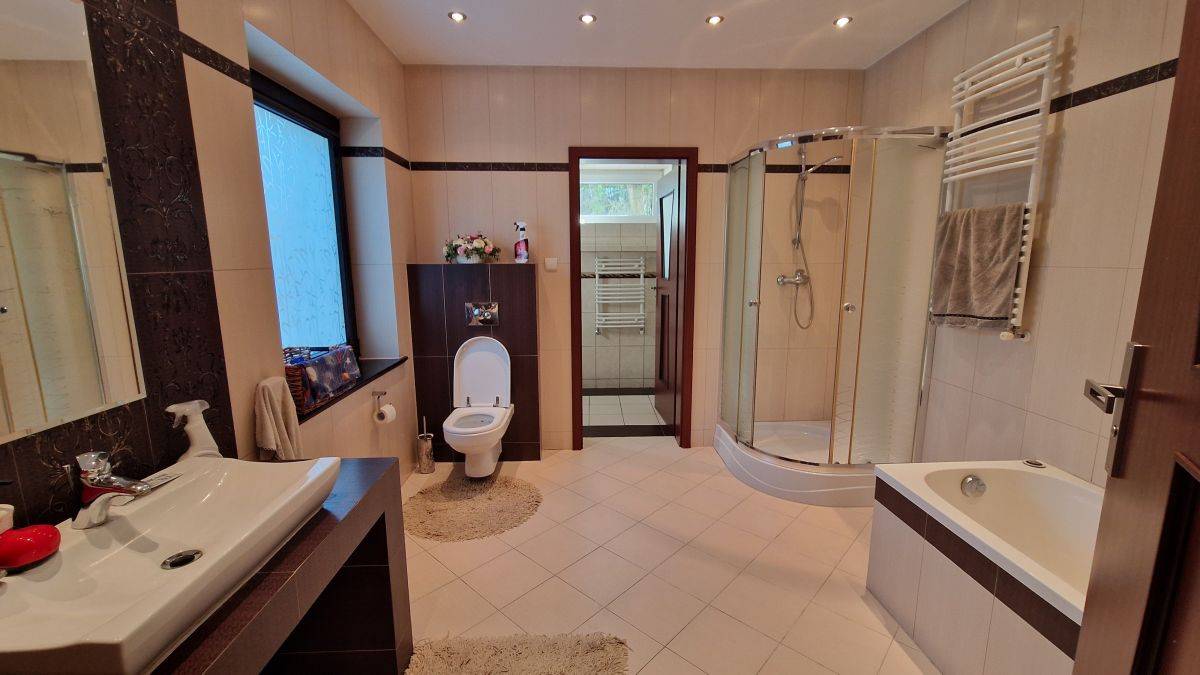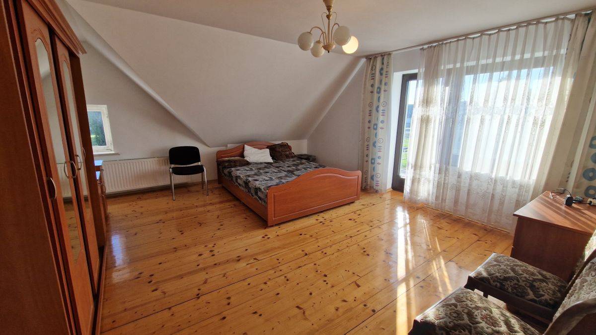 Na piętrze: 3 sypialnie, w tym jedna z balkonem, duży otwarty pokój oraz część strychu do ewentualnego zagospodarowania.