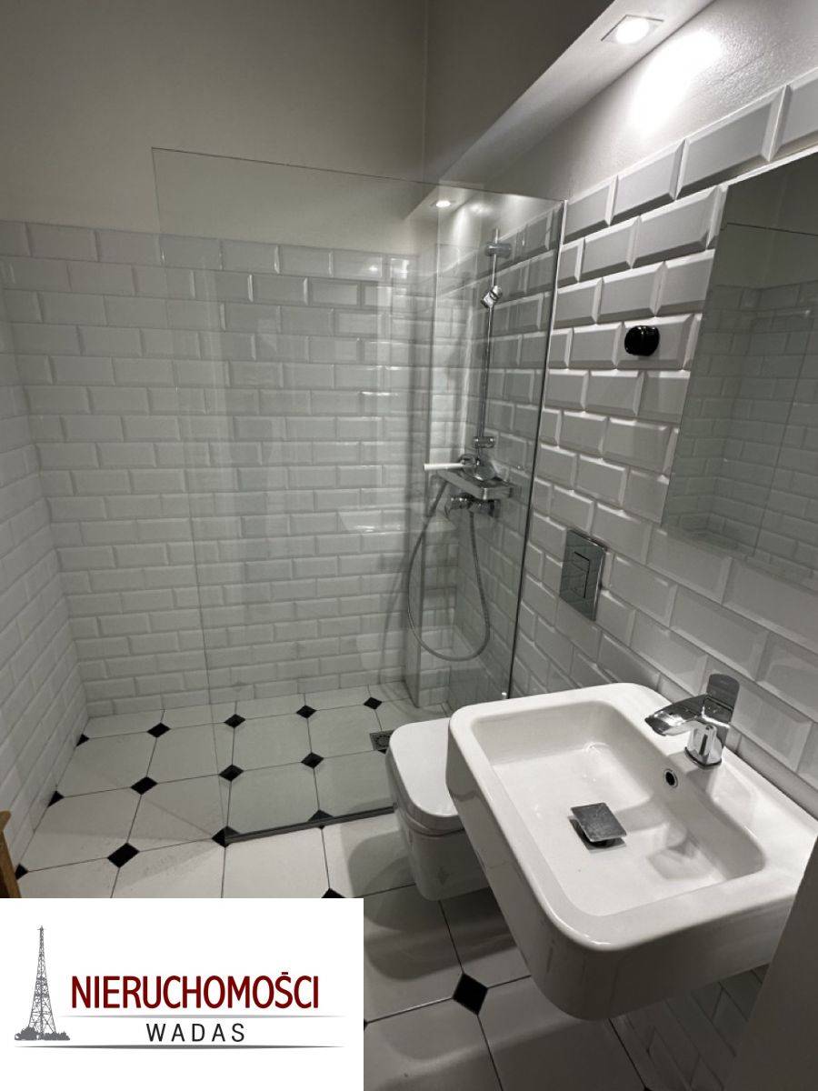 - Łazienka wyposażona w kabinę prysznicową, umywalkę oraz toaletę.