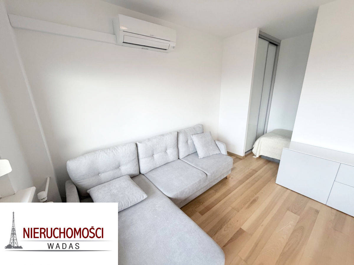 Salon bardzo jasny, z ogromnymi oknami a co najważniejsze i rzadkie w kawalerkach - z dużym balkonem. W salonie duży narożnik, stół, TV i zabudowane szafki.