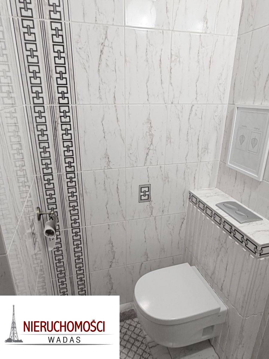 Łazienka gustownie wykafelkowana z prysznicem, osobno WC.