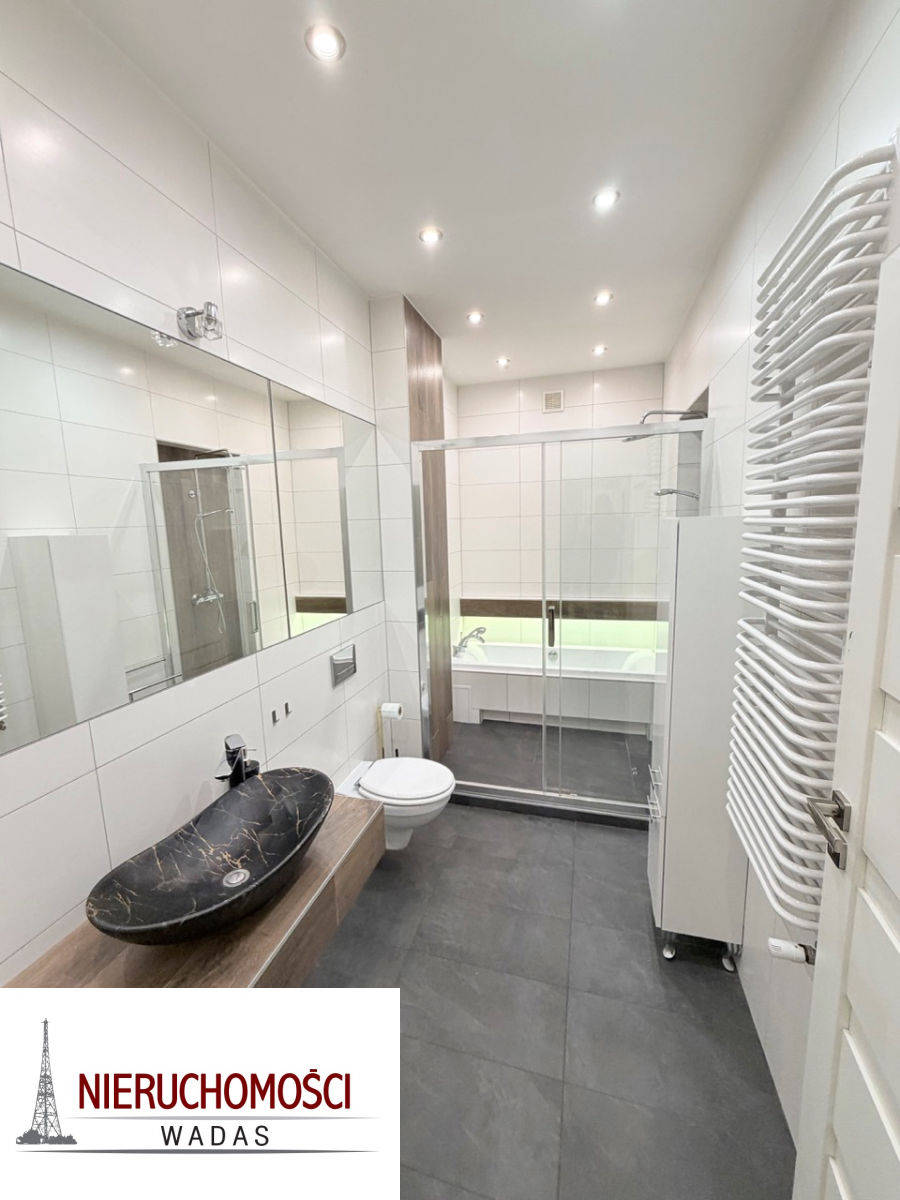 Mieszkanie zostało starannie wyremontowane i utrzymane w doskonałym stanie technicznym. Nowoczesne, stylowe wnętrza, wykończone w eleganckim designie z dominacją bieli, szarości, czerni i elementów drewna, tworzą przestrzeń pełną światła i harmonii. Jasne kolory i dobrze dobrane oświetlenie podkreślają luksusowy charakter mieszkania.
