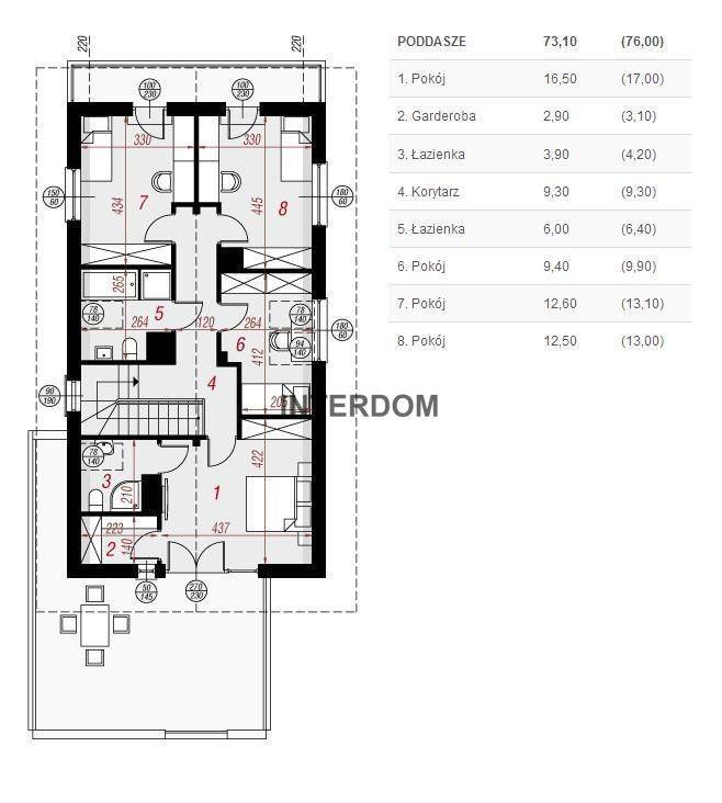 - Na piętrze są 3 pokoje, duża garderoba, łazienka z wc, duży taras.