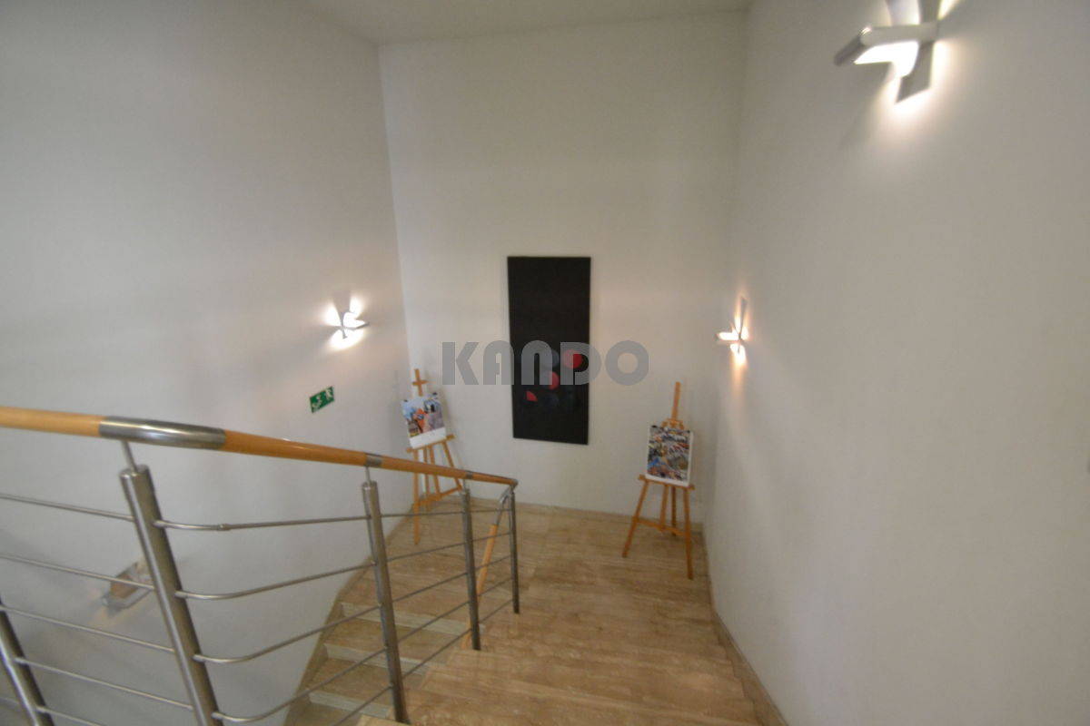 Na dwóch kondygnacjach obecnie zorganizowane są gabinety, sale typu open space, hol z recepcją, toalety.