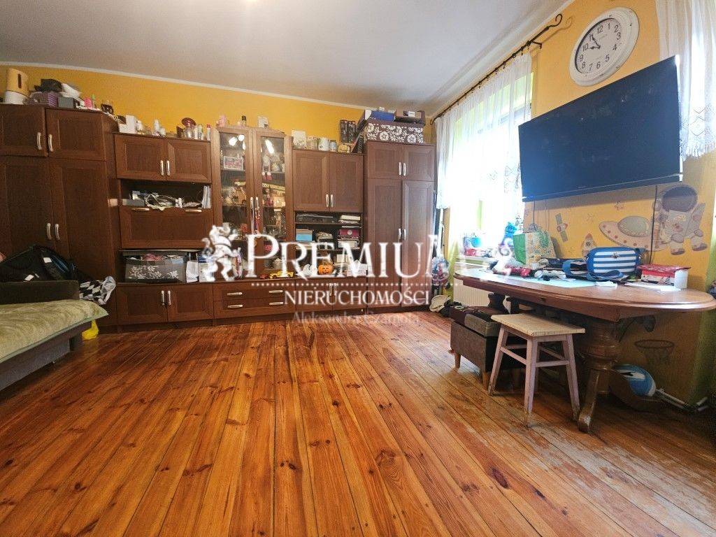 Ustawny pokój o pow ok 18 m2, na podłodze deski do wycyklinowania, okna pcv, na ścinach tynk.