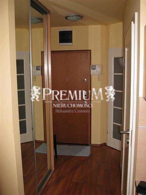 Przedpokój z szafą garderobianą typu Komandor, drzwi wejściowe antywłamaniowe, wideodomofon.