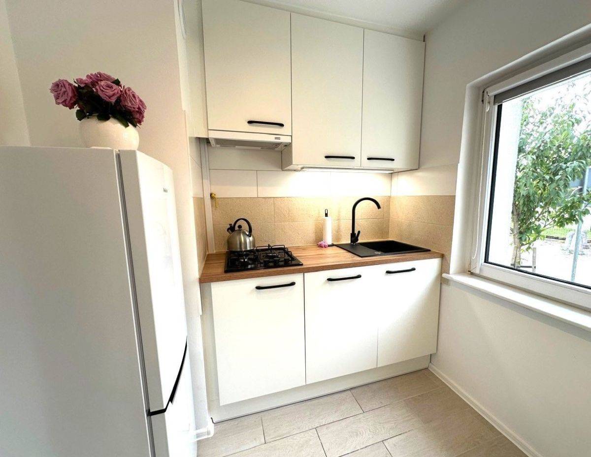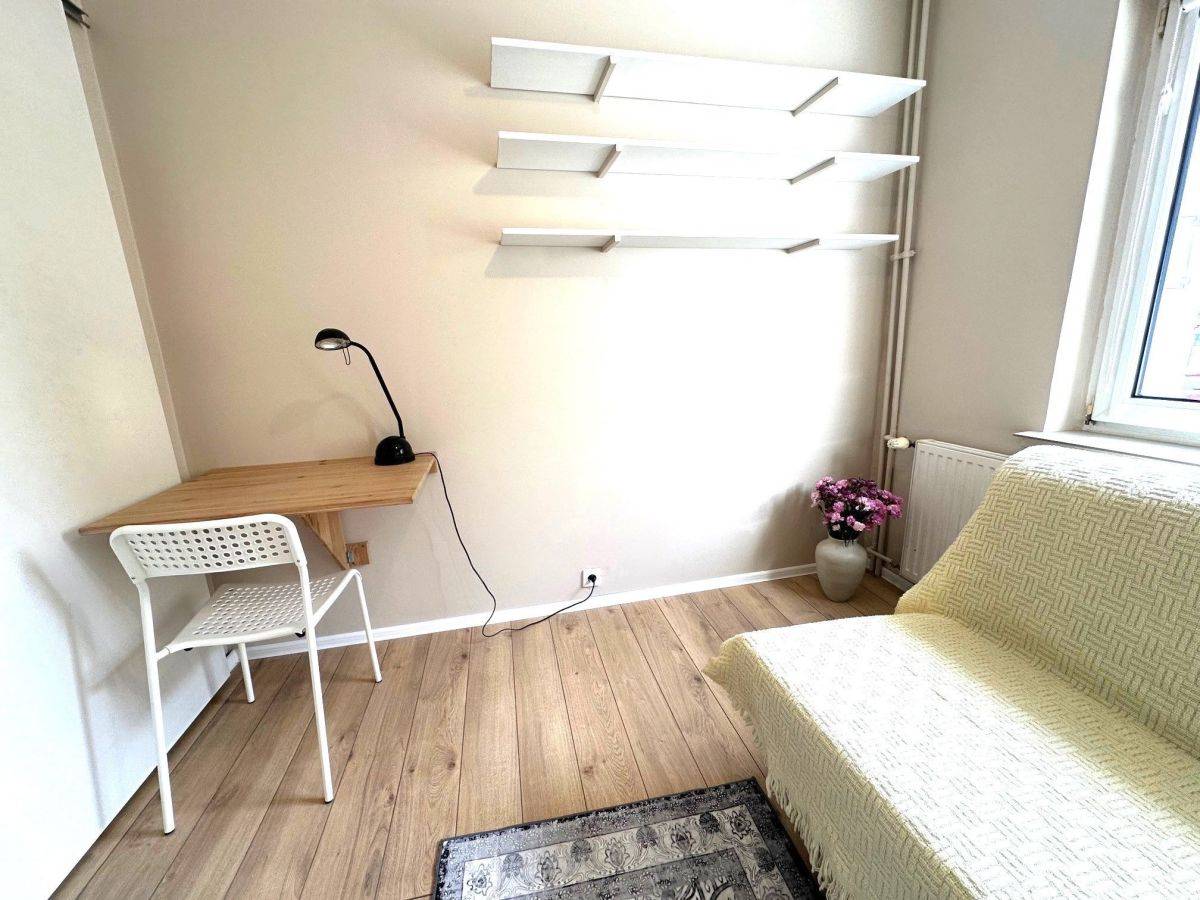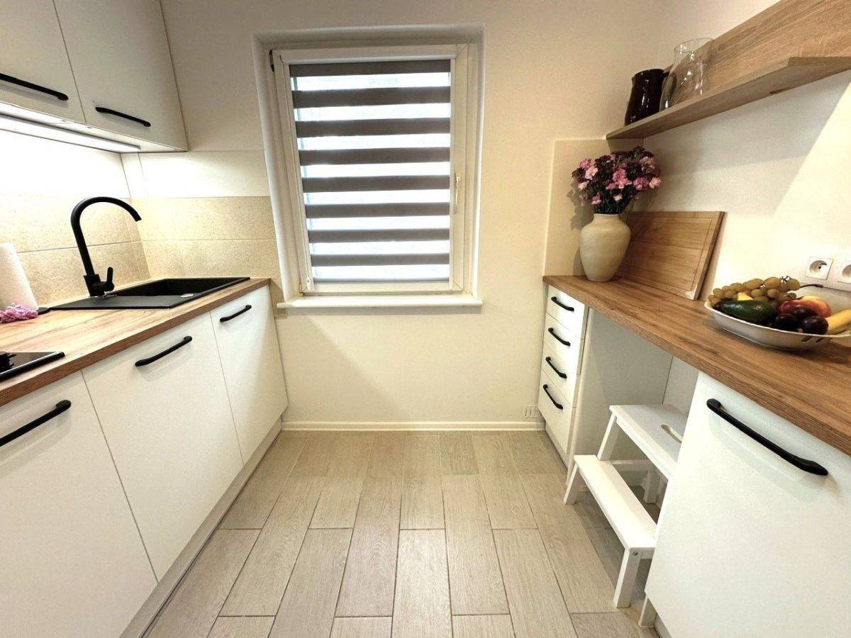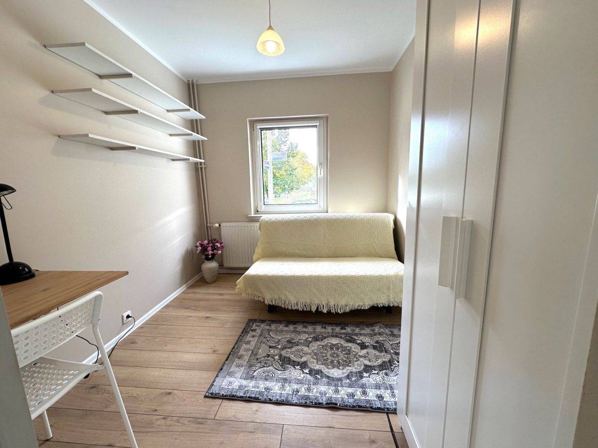 W pełni umeblowane i wyposażone mieszkanie to gotowa propozycja dla osób ceniących wygodę i praktyczność. Nowa kuchnia z nowoczesnym sprzętem na gwarancji obejmuje lodówkę z zamrażarką, gazową kuchnię, pochłaniacz, zmywarkę oraz podstawowe naczynia i sztućce. W łazience, mimo niewielkich rozmiarów, zmieściła się pralka. Salon urządzono z myślą o relaksie i spotkaniach: stół z trzema krzesłami, 2 fotele, rozkładana sofa, ława oraz szafa. W sypialni znajdziesz biurko, rozkładaną sofę i dużą szafę - miejsca na ubrania z pewnością nie zabraknie. Dodatkowo, w korytarzu jest przestronna szafa, zapewniająca miejsce na przechowywanie.
