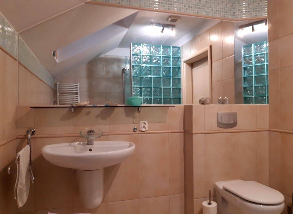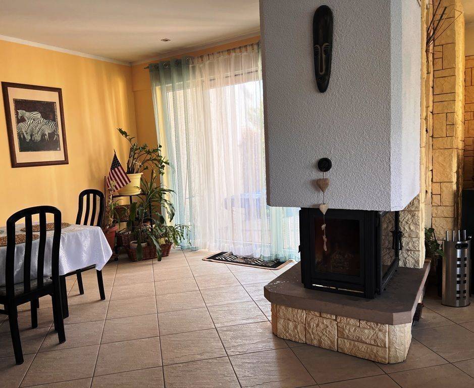 W salonie znajduje się ponadto piękny trójstronny kominek, umilający i dogrzewający jesienne i zimowe wieczory.
