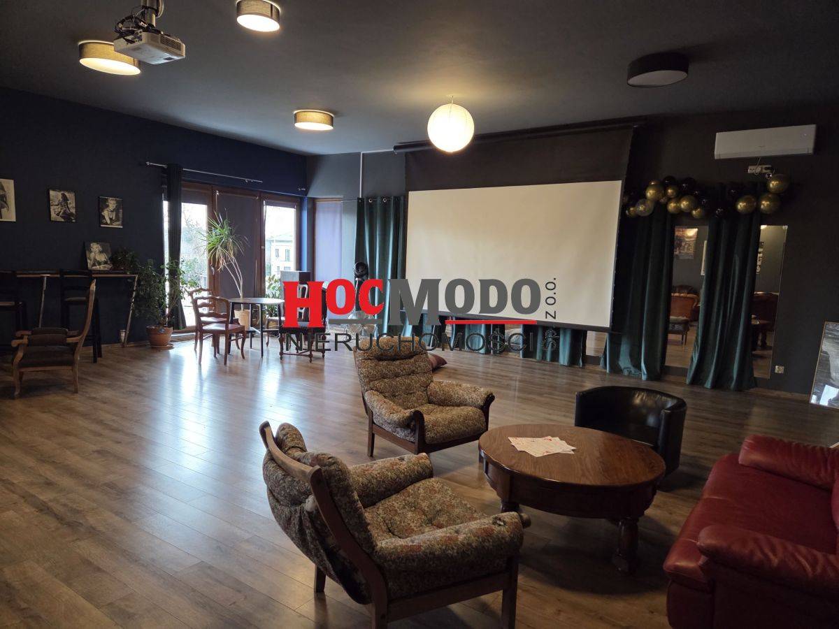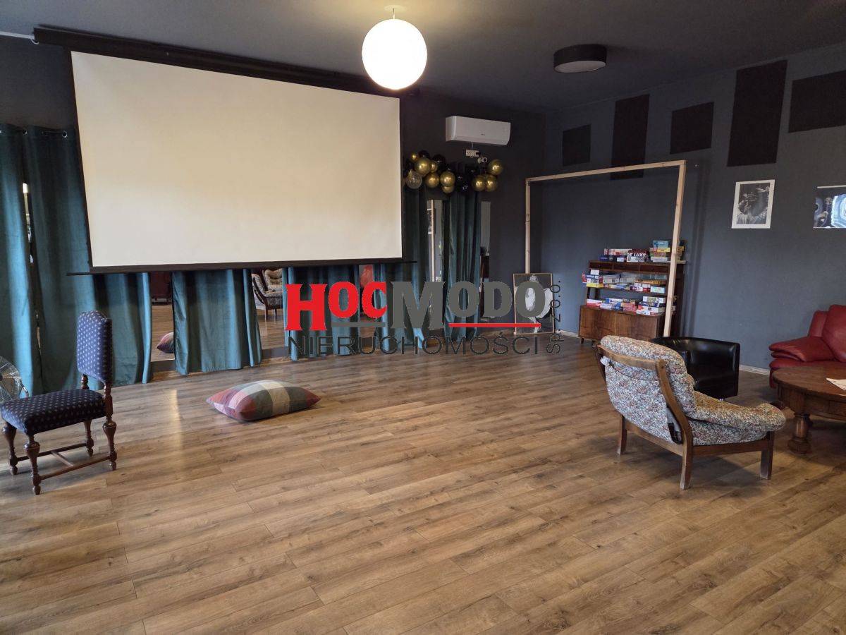 Obecnie w budynku na powierzchni ok 600m2 prowadzona jest działalność gospodarcza - kawiarenka z salą imprez do wynajęcia, sala zabaw dla dzieci a część w przyziemiu wynajmowana jest na cele edukacyjne. Kolejne 150m2 to część prywatna, mieszkalna z niezależnym wejściem, tarasem, zimowym ogrodem.