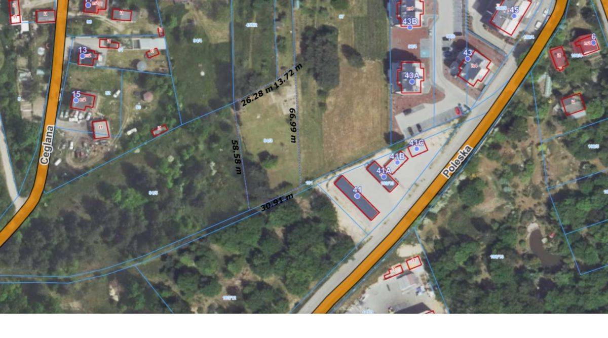 Powierzchnia działki 1986 metrów kwadratowych położona w strefie zabudowy mieszkaniowej. Działka ogrodzona, częściowo zagospodarowana i zadrzewiona.
