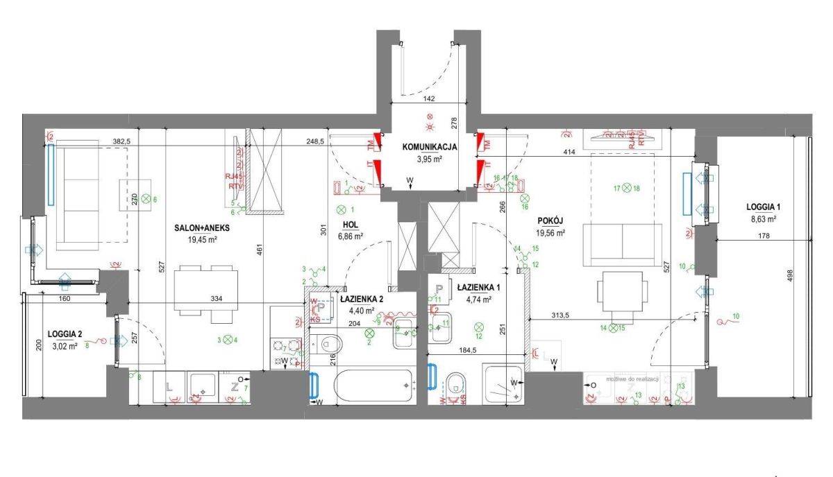 Osobne liczniki: każda kawalerka posiada własne liczniki prądu, wody oraz ogrzewania.