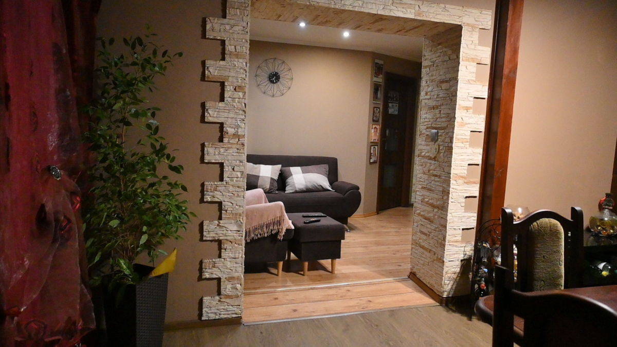 - piętro: przedpokój z klatką schodową 9,7 m2, łazienka 3,6 m2, trzy pokoje 11,10 m2 i 9,11 m2, 8,50 m2 i salon z aneksem kuchennym około18 m2.