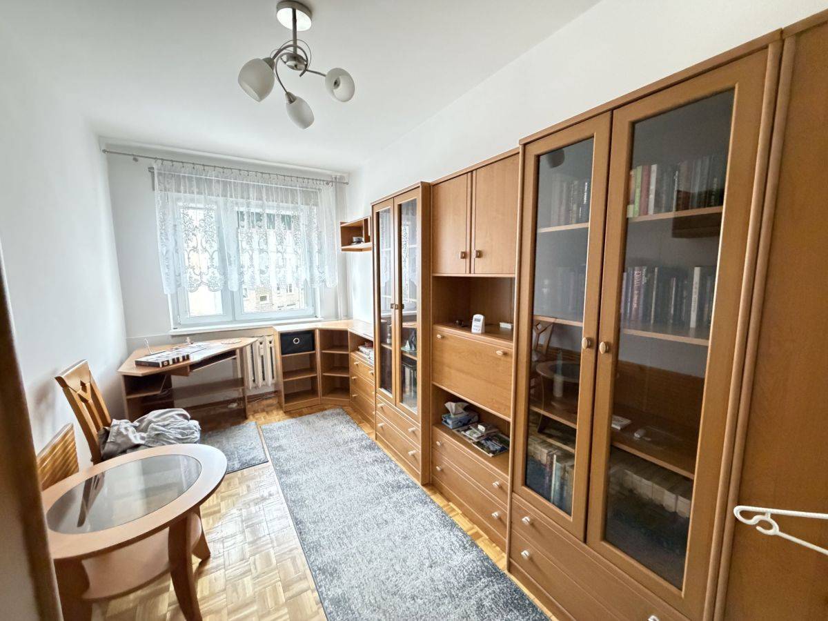 Okna PCV zapewniają wysoką izolację akustyczną i termiczną. Podłogi wykończone są mozaiką parkietową w bardzo dobrym stanie — nigdy nie były cyklinowane. Łazienka została niedawno odnowiona, wyłożona nowoczesnymi płytkami, z wbudowaną szafą, pojemnikiem na brudną odzież oraz pralką, która może pozostać w cenie mieszkania. W korytarzu znajduje się duża, zabudowana szafa na wymiar. Nowe, antywłamaniowe drzwi wejściowe gwarantują bezpieczeństwo.