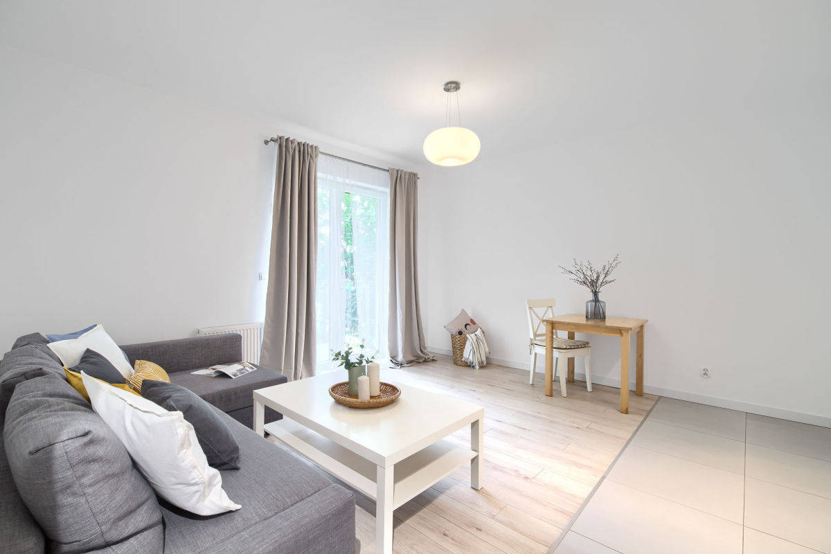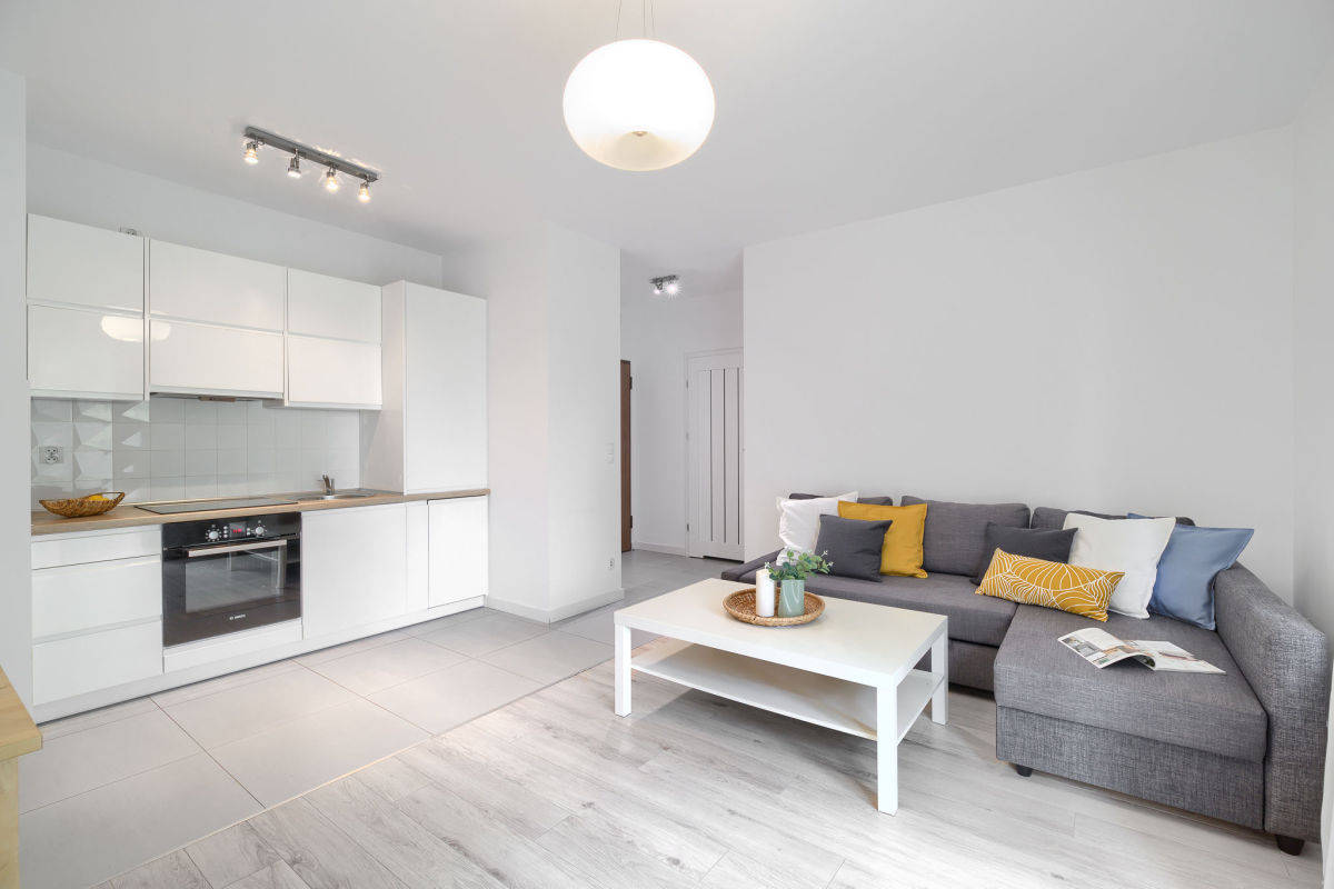 Mieszkanie zostało wykończone w wysokim standardzie, w pełni wyposażone i gotowe do zamieszkania. W nowoczesnej kuchni znajdziesz nową zabudowę oraz sprzęty agd: płytę grzewczą, piekarnik, dużą lodówkę z zamrażarką, zmywarkę i okap. W łazience czeka na Ciebie pralka, wanna, a także praktyczna szafka wisząca z lustrem oraz stojąca. W sypialni znajduje się duża dwudrzwiowa szafa w zabudowie, komfortowe łóżko z wygodnym materacem, a w korytarzu kolejna dwudrzwiowa szafa z lustrem. Salon urządzony jest w elegancki narożnik z funkcją spania oraz stolik kawowy.