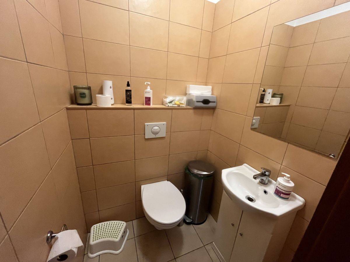 - jasna łazienka z kabiną prysznicową w eleganckich płytkach,
