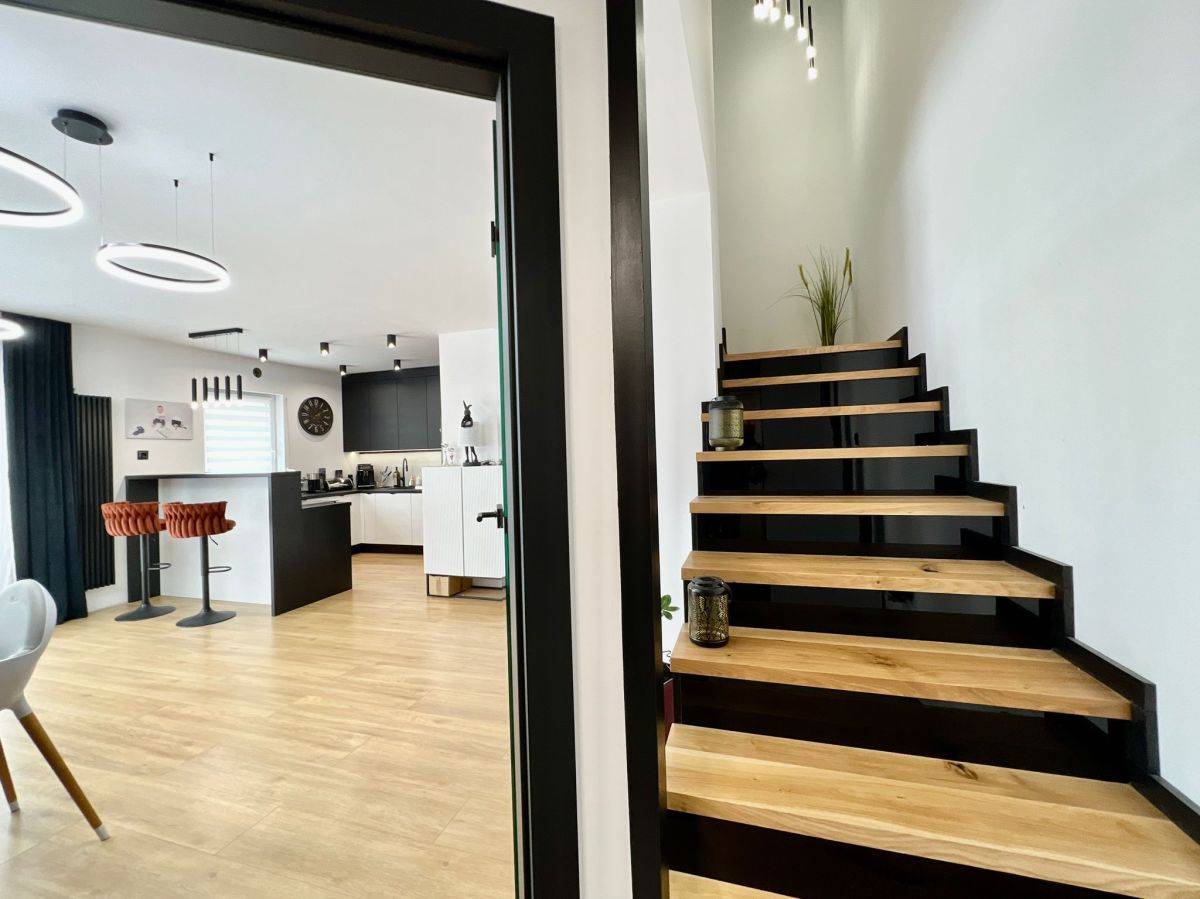 Nowoczesne, dwupoziomowe mieszkanie o powierzchni 100 mkw, wykończone z dbałością o każdy detal i z użyciem materiałów najwyższej klasy.