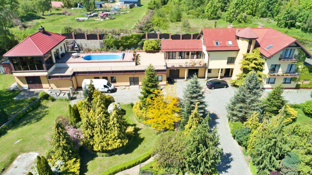 Ta przestronna willa o imponującej powierzchni ponad 1300 mkw, na pięknej działce z własnym stawem, to idealne miejsce zarówno do życia, jak i prowadzenia działalności gospodarczej.