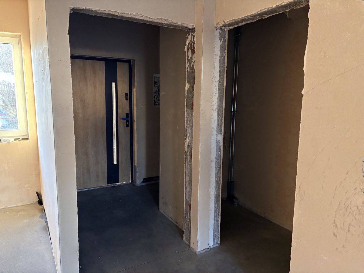 Tynki wewnętrzne gipsowe maszynowe, okna PCV pięcio-komorowe,trzyszybowe, schody betonowe.