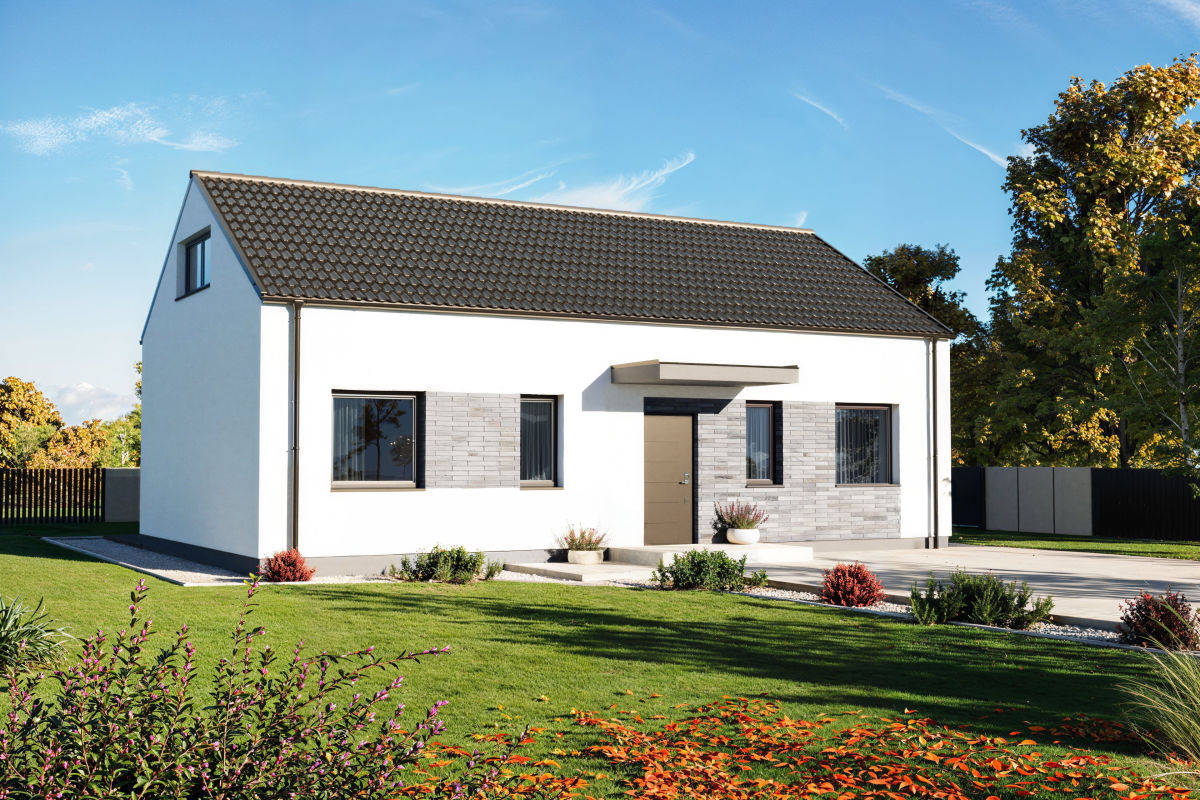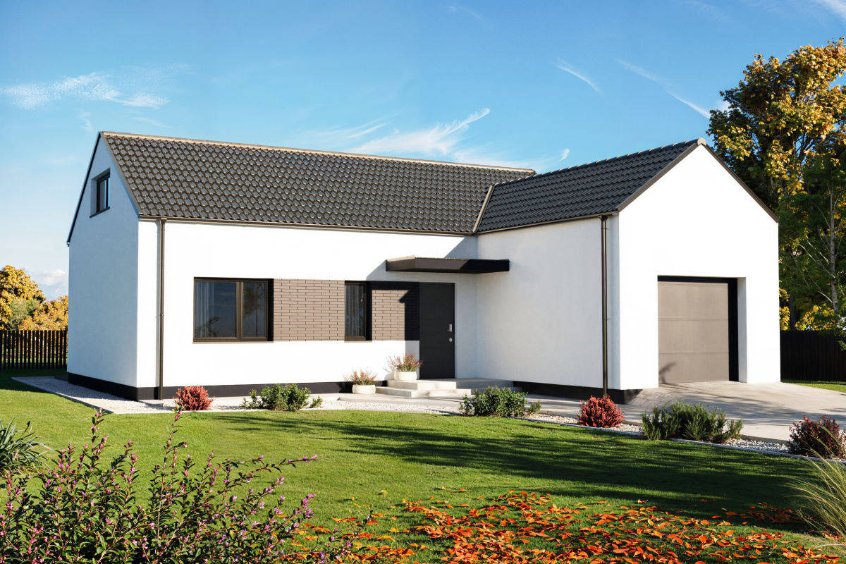 Proponujemy dom parterowy wybudowany w oparciu o nowoczesne technologie. Śliczny, prosty, sprytny i tani w utrzymaniu - coś czego wszyscy poszukują!