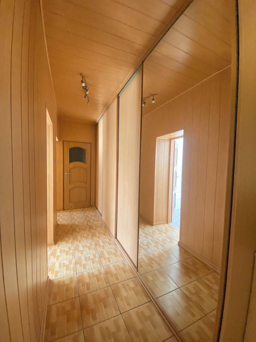 Okna PCV, wymienione piony kanalizacyjne, w przedpokoju duża zabudowana szafa.