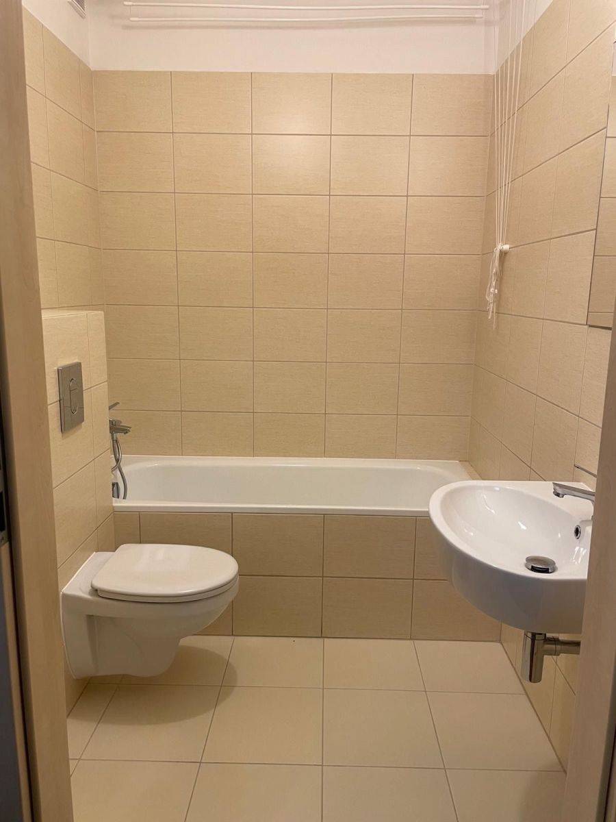 - Łazienka - 3,70 m²: wanna, miejsce na pralkę.