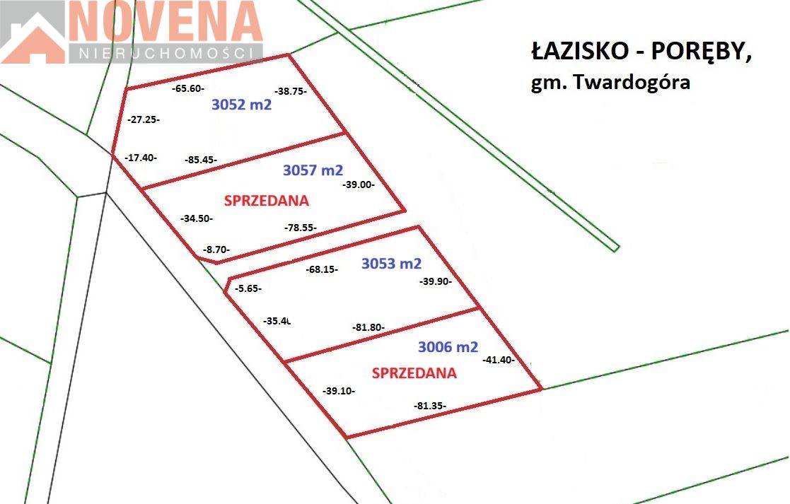 Do wyboru jeszcze dwie działki o powierzchniach 3052m2 i 3053 m2, o kształtach zbliżonych do prostokątów.