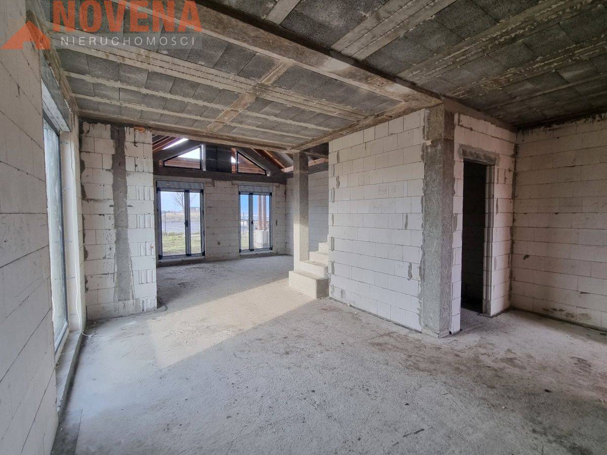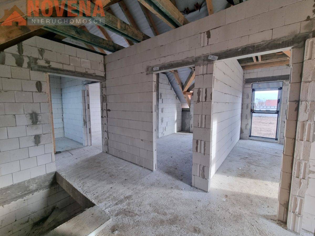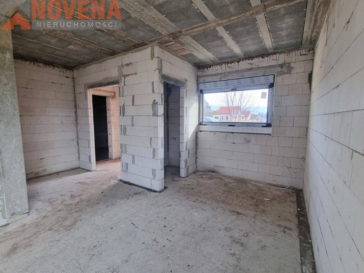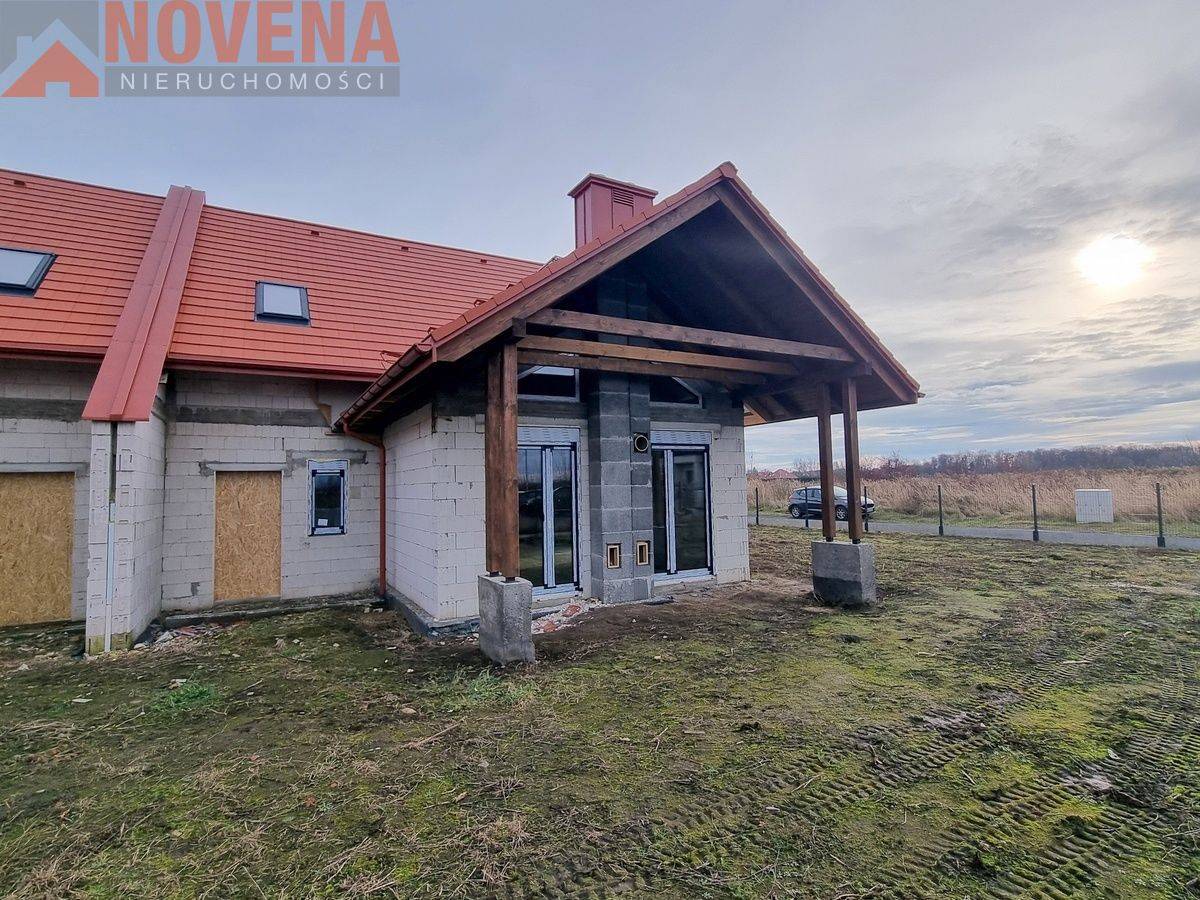 Lewa połowa domu w zabudowie bliźniaczej w stanie surowym zamkniętym o powierzchni użytkowej 116,60 m2 (+ garaż w bryle budynku 22,27 m2), położona na osobnej działce 578 m2 we wsi Stary Śleszów, 6km od Żórawiny.