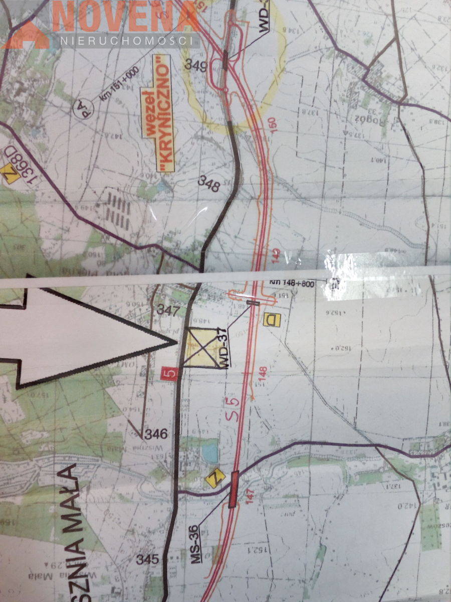 Działka inwestycyjna w rejonie węzła zjazdowo/wjazdowego Kryniczno na drogę szybkiego ruchu S-5 Wrocław-Poznań, we wsi Ligota Piękna , od strony starej trasy S-5.