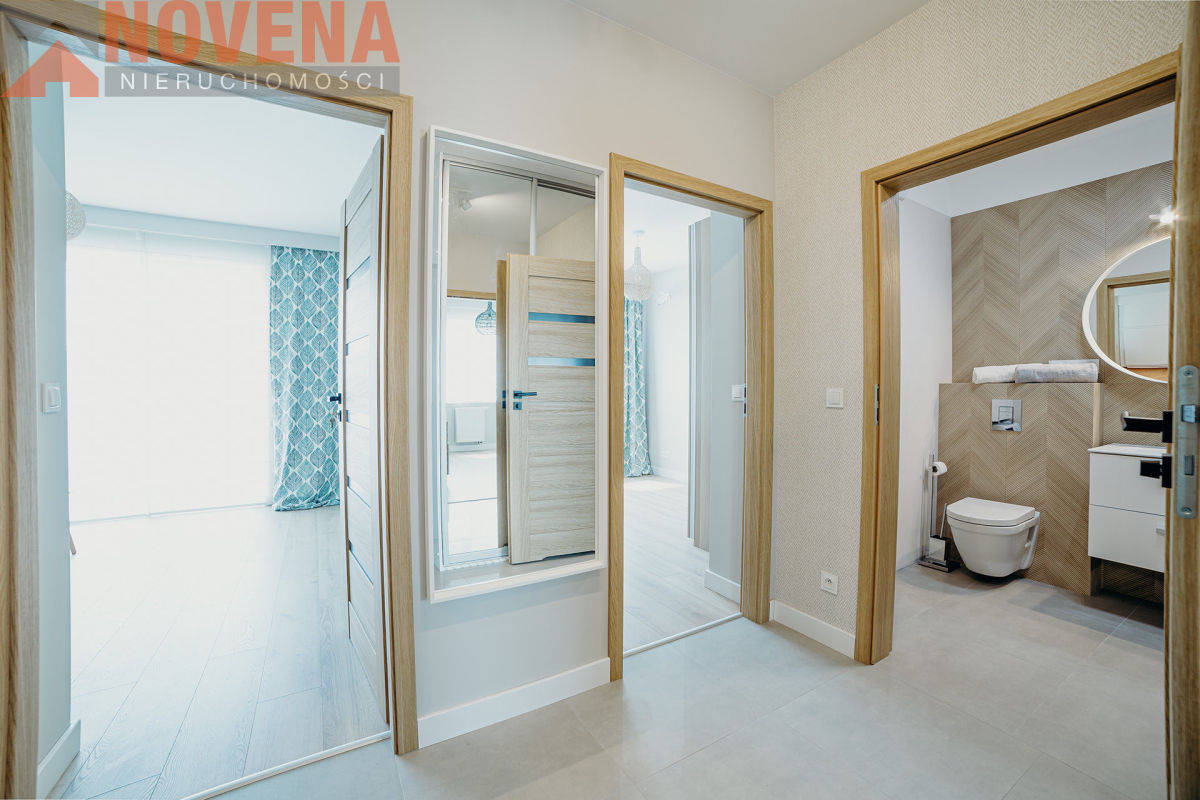 Do wynajęcia piękne, nowe mieszkanie z balkonem i garażem podziemnym.