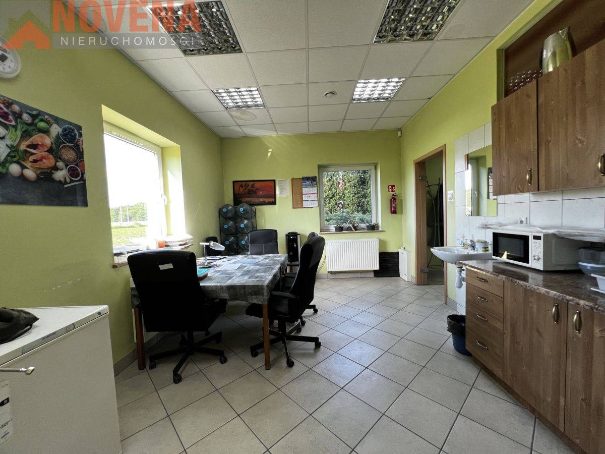 Dach budynku kryty blachą, na której zamontowano panele fotowoltaiczne o mocy 40kW, dzięki czemu rachunki za prąd są znikome. Konstrukcja ścian wykonana z pustaków Ytong. Na parterze znajduje się hala o pow. ok 500m2, część socjalna dla pracowników, kuchnia, jadalnia, szatnia, korytarz, łazienka oraz showroom. Wejścia do budynku znajdują się z każdej strony. Piętro zostało zagospodarowane pod pomieszczenia biurowe, dwa mieszkania oraz łazienkę.