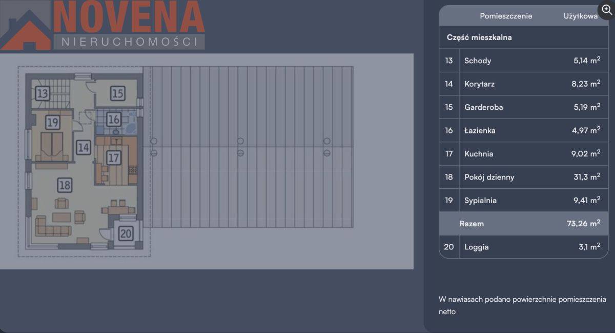Na piętrze znajduje się komfortowa część mieszkalna, która została zaprojektowana jako pełnowartościowe mieszkanie. Przestrzeń ta pozwala na wygodne codzienne funkcjonowanie i zapewnia prywatność osobom zamieszkującym budynek. Rozkład pomieszczeń sprzyja stworzeniu przytulnej strefy dziennej, oddzielonej od części sypialnianej i sanitarnej. Można również przeznaczyć piętro na cele usługowe, do zagospodarowania jest również poddasze o powierzchni dodatkowych 126m2.
