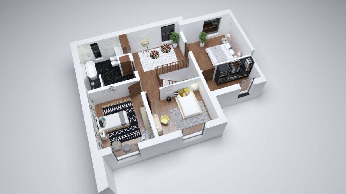 - Wykonanie tynków wewnętrznych gipsowych (twardych)na ścianach pomieszczeń za wyjątkiem łazienek i garażu. W pomieszczeniach łazienek i garaż na ścianach zostaną wykonane tynki cementowo - wapienne.