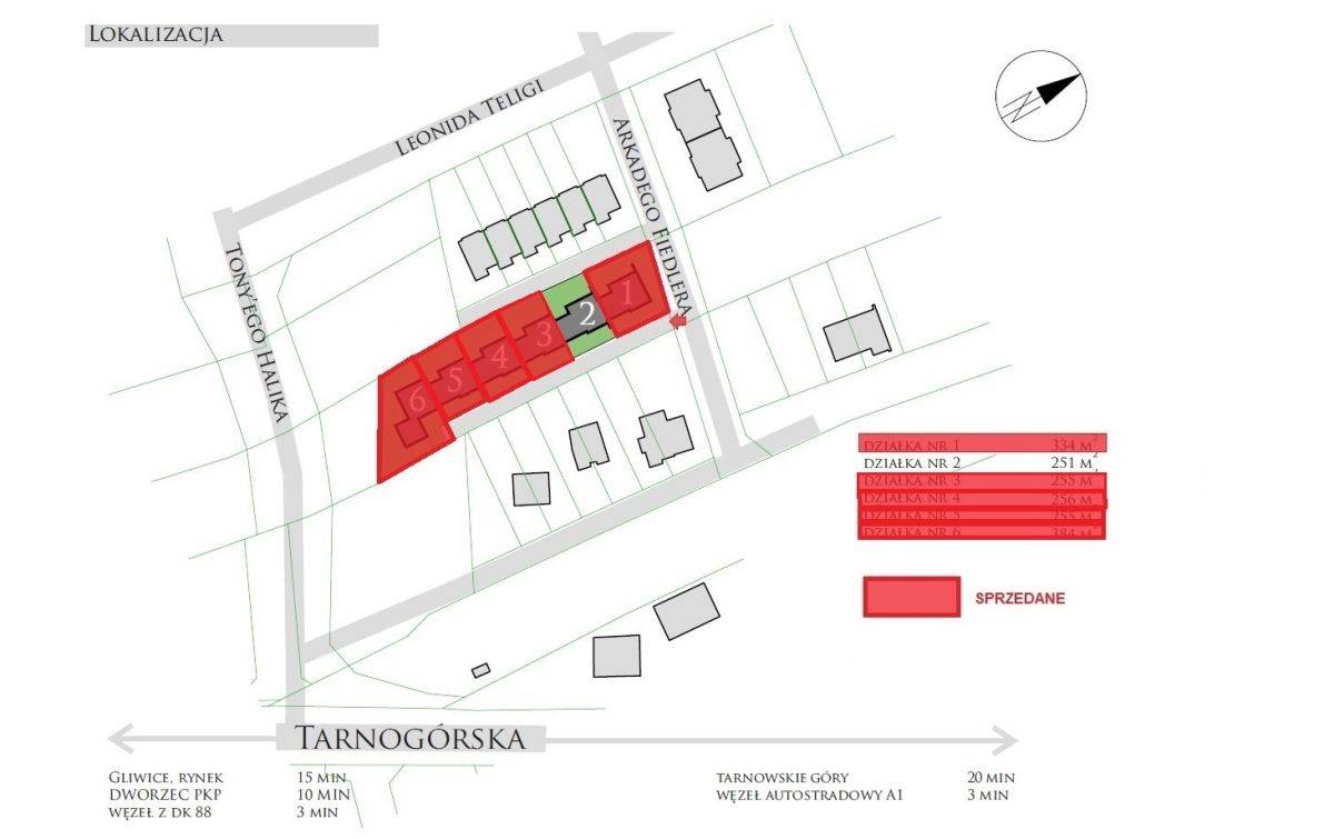 W niedalekim sąsiedztwie inwestycji zlokalizowane są przystanki komunikacji miejskiej, szkoły, klub sportowy oraz sklepy i restauracja. Doskonałe skomunikowanie z miastami aglomeracji śląskiej zapewnia bliskość autostrady A1, drogi krajowej DK88 oraz DTŚ.