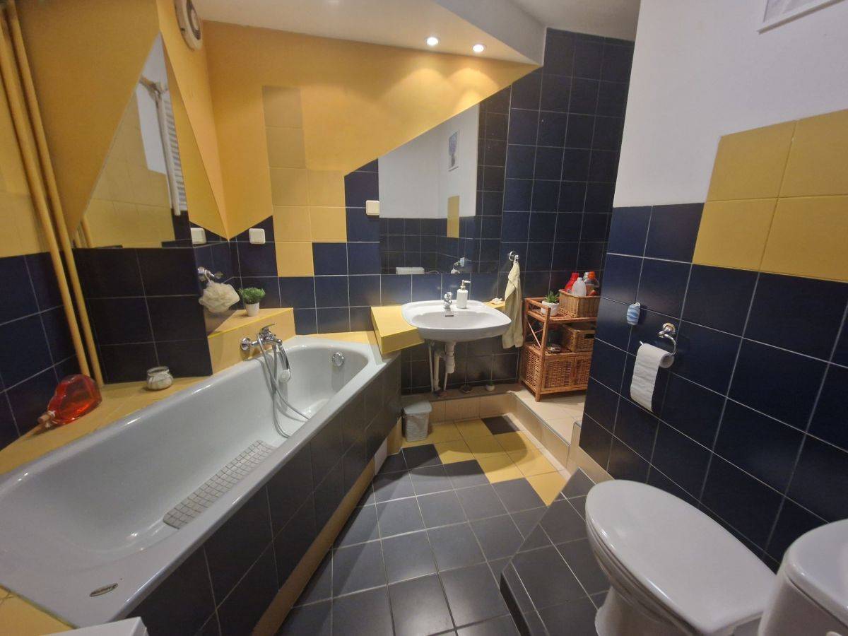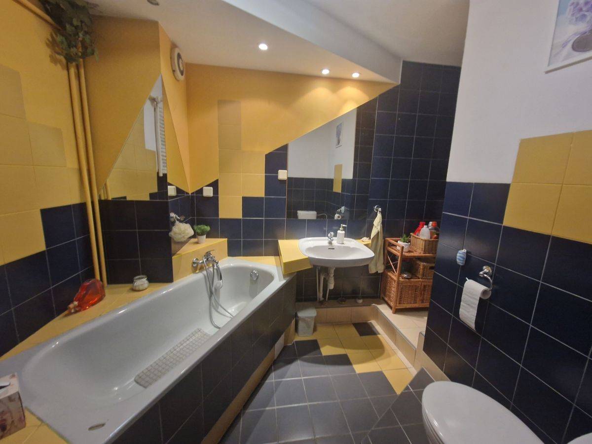 - duża łazienka ustawna, wygodna, z wanną, wc i miejscem na kabinę prysznicową z podłączeniem wody