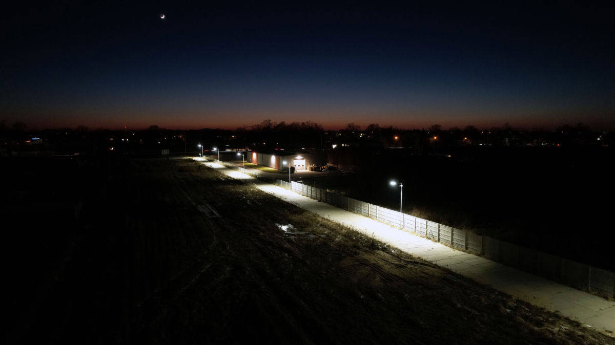 Wykonano drogę wzdłuż działki z płyt betonowych, jak widać na zdjęciu, wykonano oświetlenie drogi i tym samym działki. Wszystko sprawne.