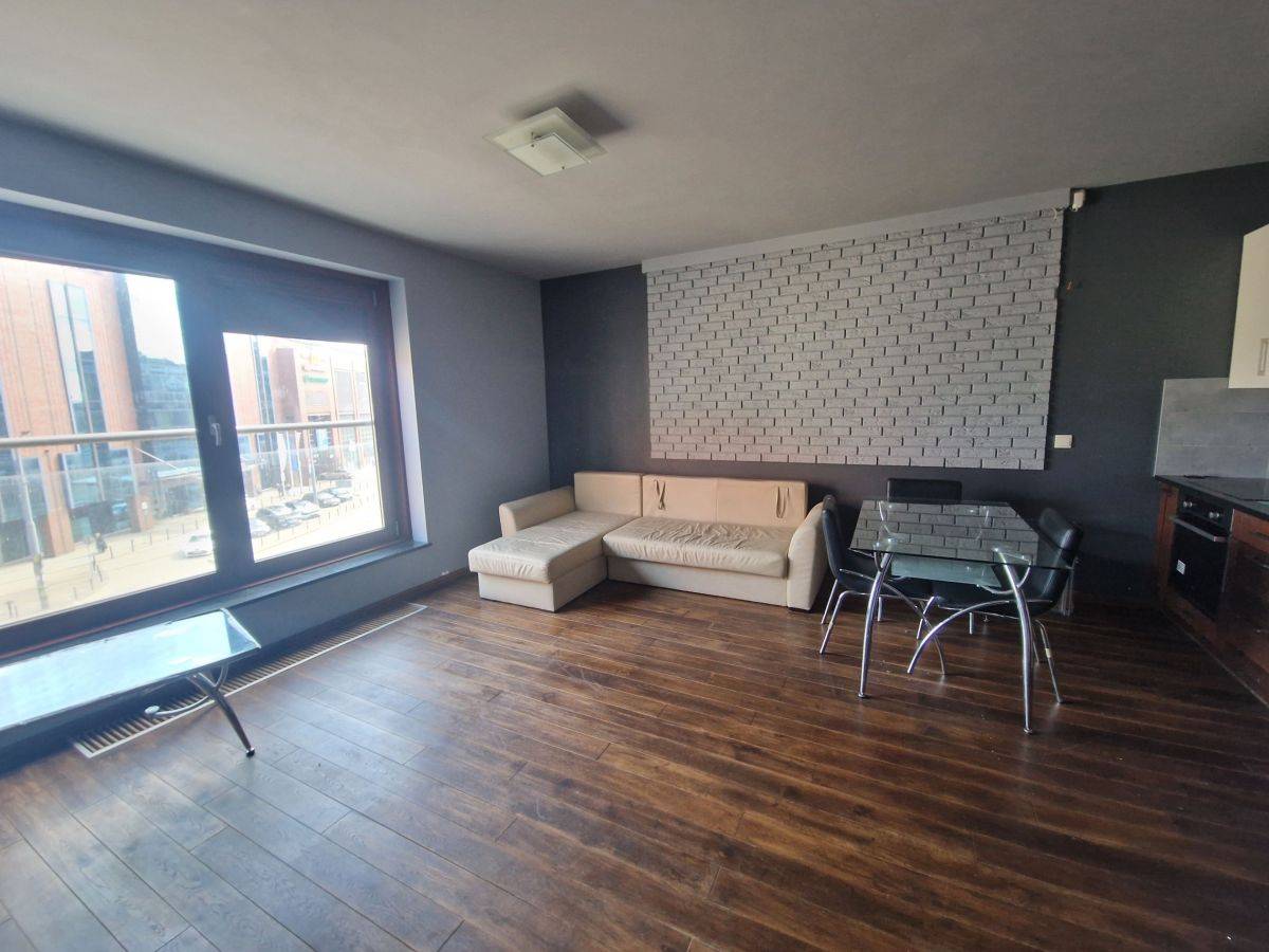 Salon połączony z aneksem kuchennym. Dodatkowo przedpokój, sypialnia, łazienka, oddzielne wc i balkon.