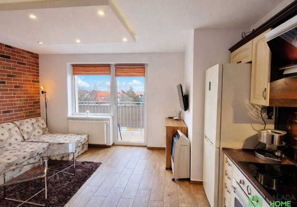Mieszkanie jest w pełni umeblowane, bardzo jasne i słoneczne, z wyjściem na balkon.